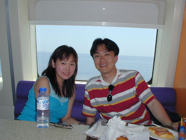 (if it being an ordinary ferry about 6 hours) from Piraeus to Mykonos sitting on the sofa